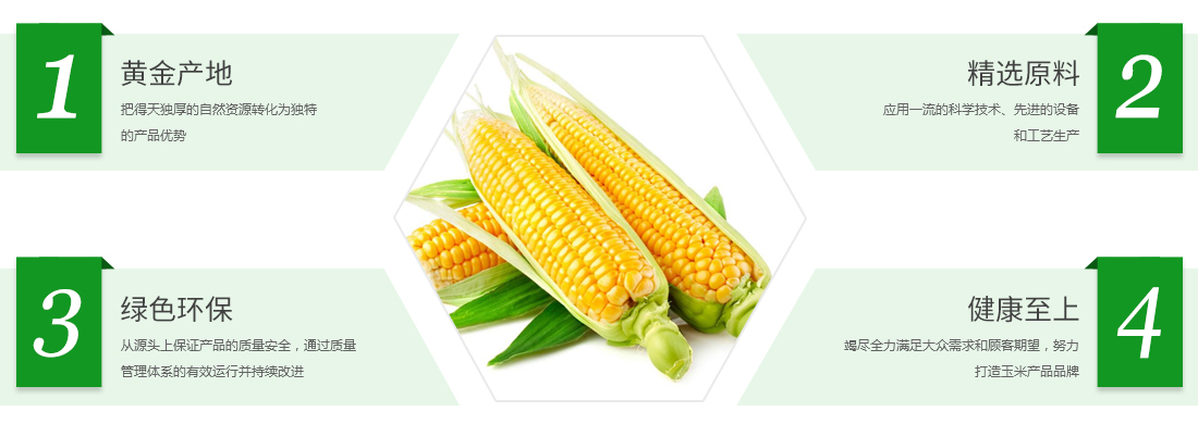 企業堅持“綠色環保,健康至上”的經營理念,把得天獨厚的自然資源轉化為獨特的產品優勢,應用一流的科學技術、先進的設備和工藝生產,精益求精,從源頭上保證產品的質量安全,通過質量管理體系的有效運行并持續改進,為消費者提供高品質產品和優質服務,竭盡全力滿足大眾需求和顧客期望,努力打造玉米產品品牌。
